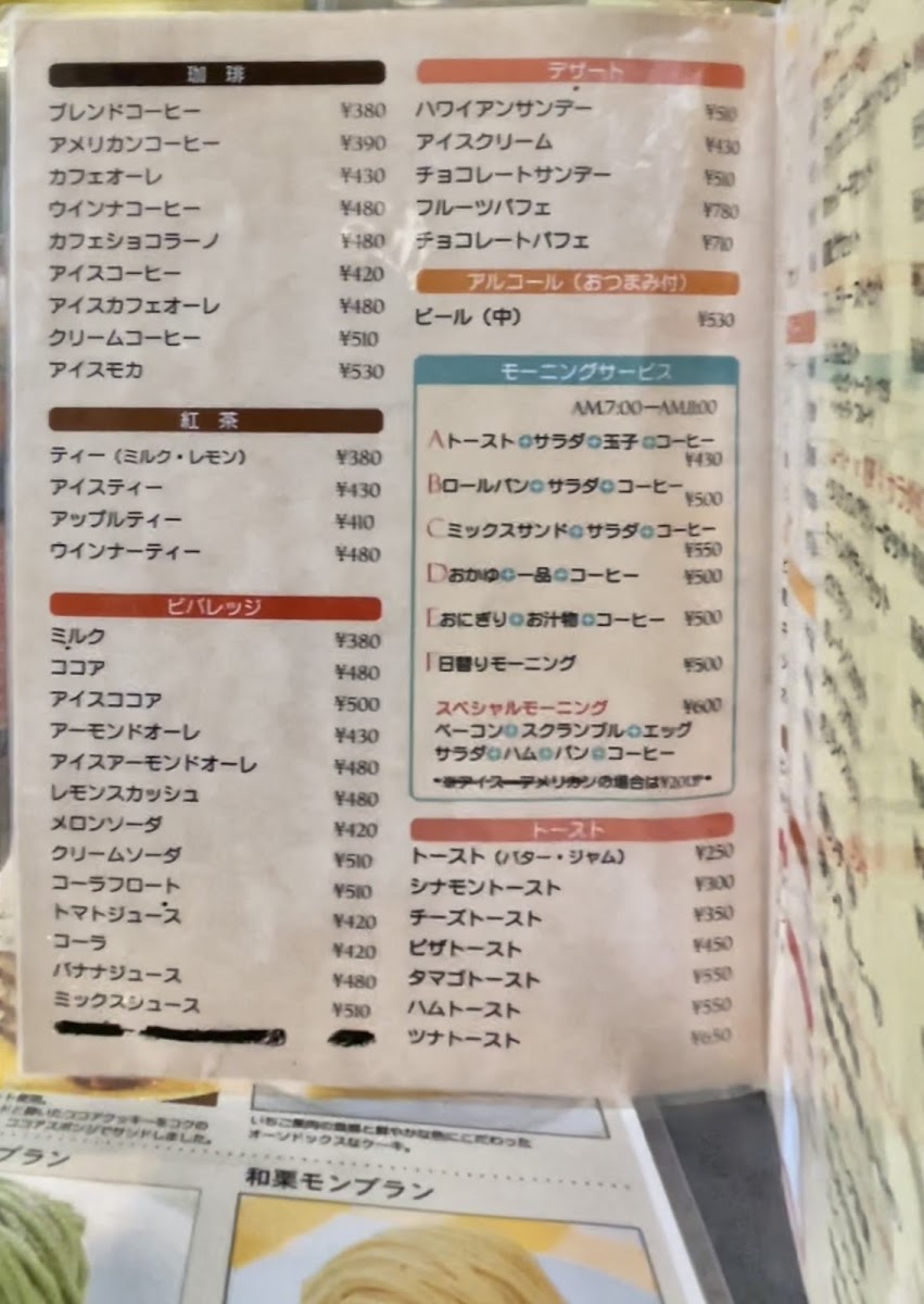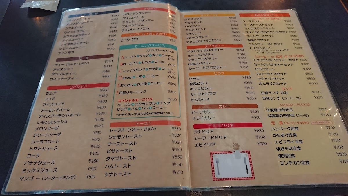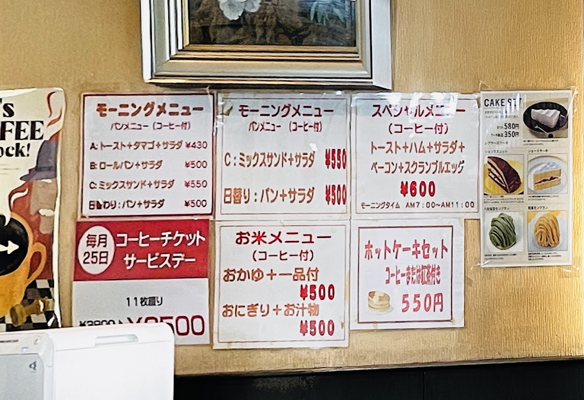 The menu highlights include the delightful morning set, featuring a generous plate of buttery toast, crispy bacon, ham, scrambled eggs, and a refreshing macaroni salad, all paired beautifully with hot coffee. Diners often mention the cozy atmosphere, punctuated by classic Showa-era pop tunes that enhance the dining experience.